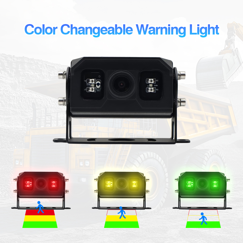Luz de advertencia de cambio de color incorporada de la cámara AI BSD, que puede cambiar el color de la luz cuando el objeto ingresa al área de detección correspondiente (rojo, amarillo, verde).