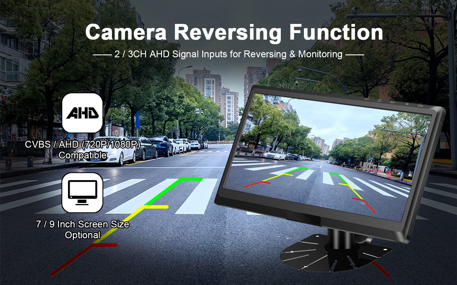 7 pulgadas: https://www.szcarleaders.com/7-inch-ips-2av-ahd-vehicle-monitor-support-carplay-multimedia.html