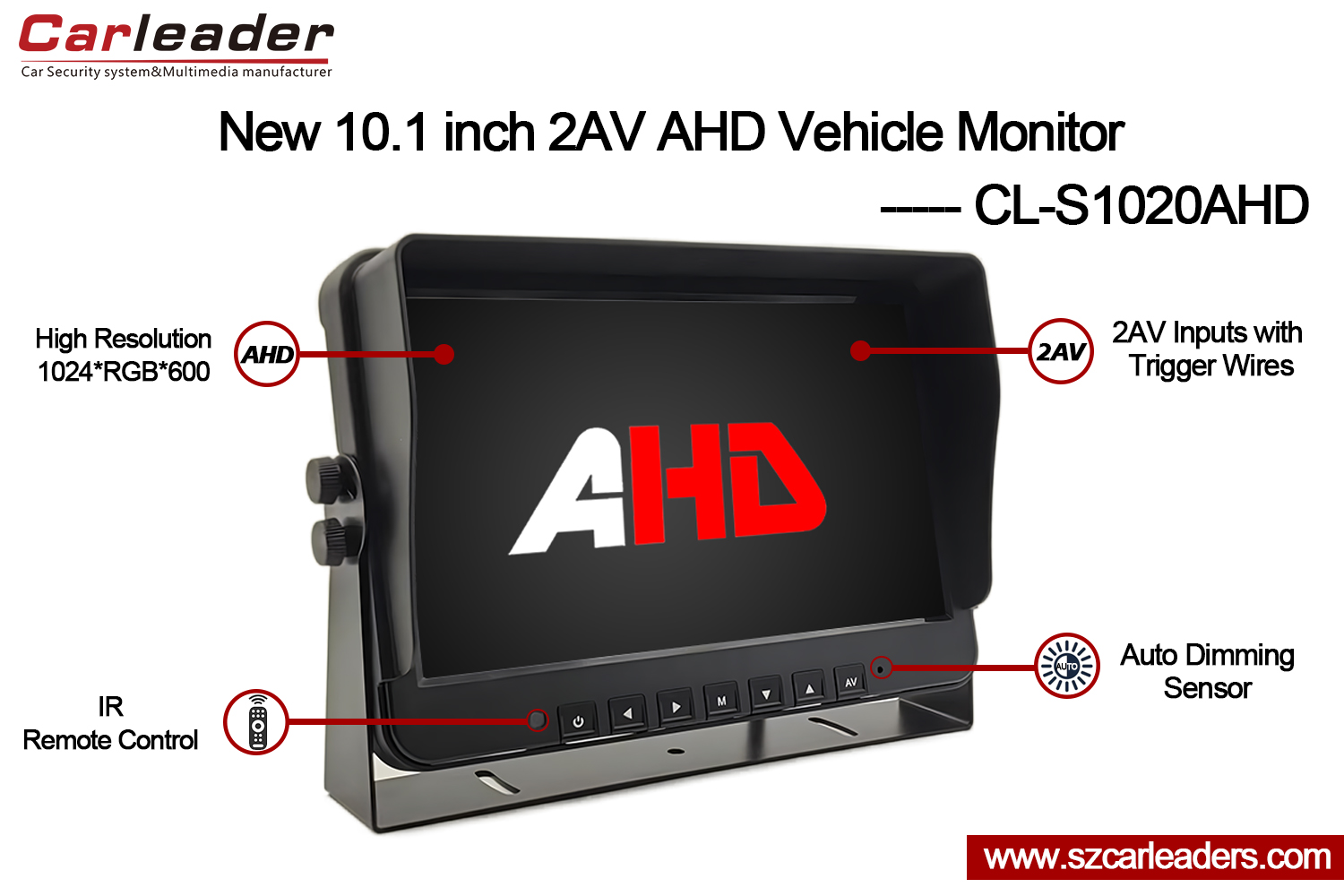 Carleaderse enorgullece de presentarles nuestro Monitor de respaldo de vehículo con entradas AHD de 10,1 pulgadas y 2 canales.