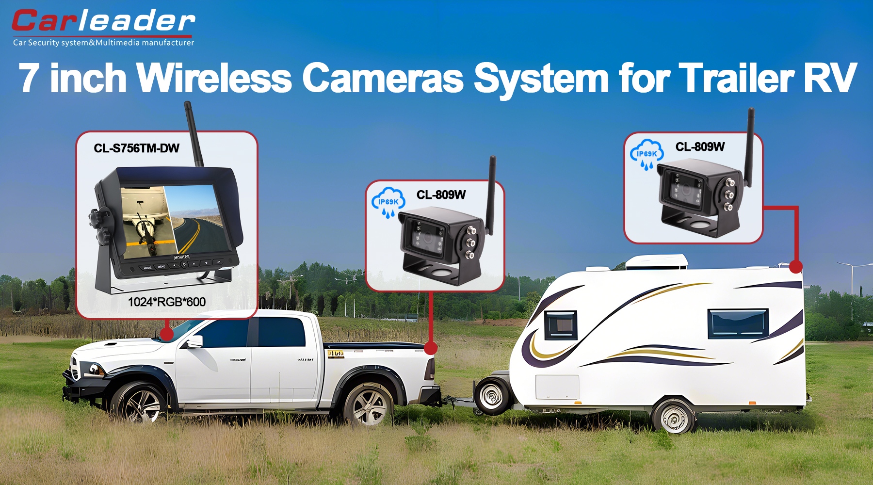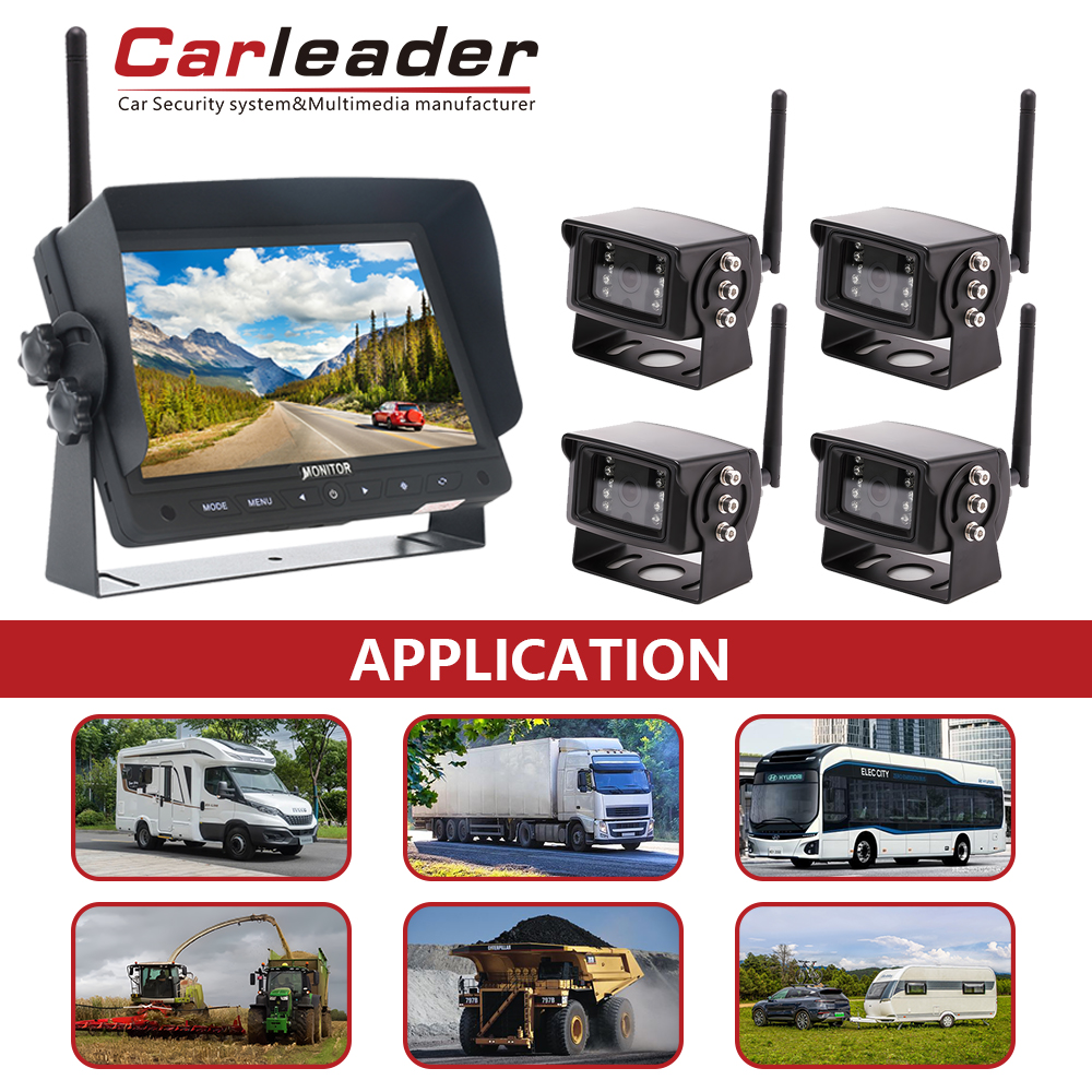 Versatilidad: el sistema de cámara con pantalla dividida Carleader de 7 pulgadas, 2,4 G, inalámbrico digital y 2 canales se puede utilizar en una variedad de vehículos, incluidos vehículos recreativos, autobuses, camiones, remolques, etc.