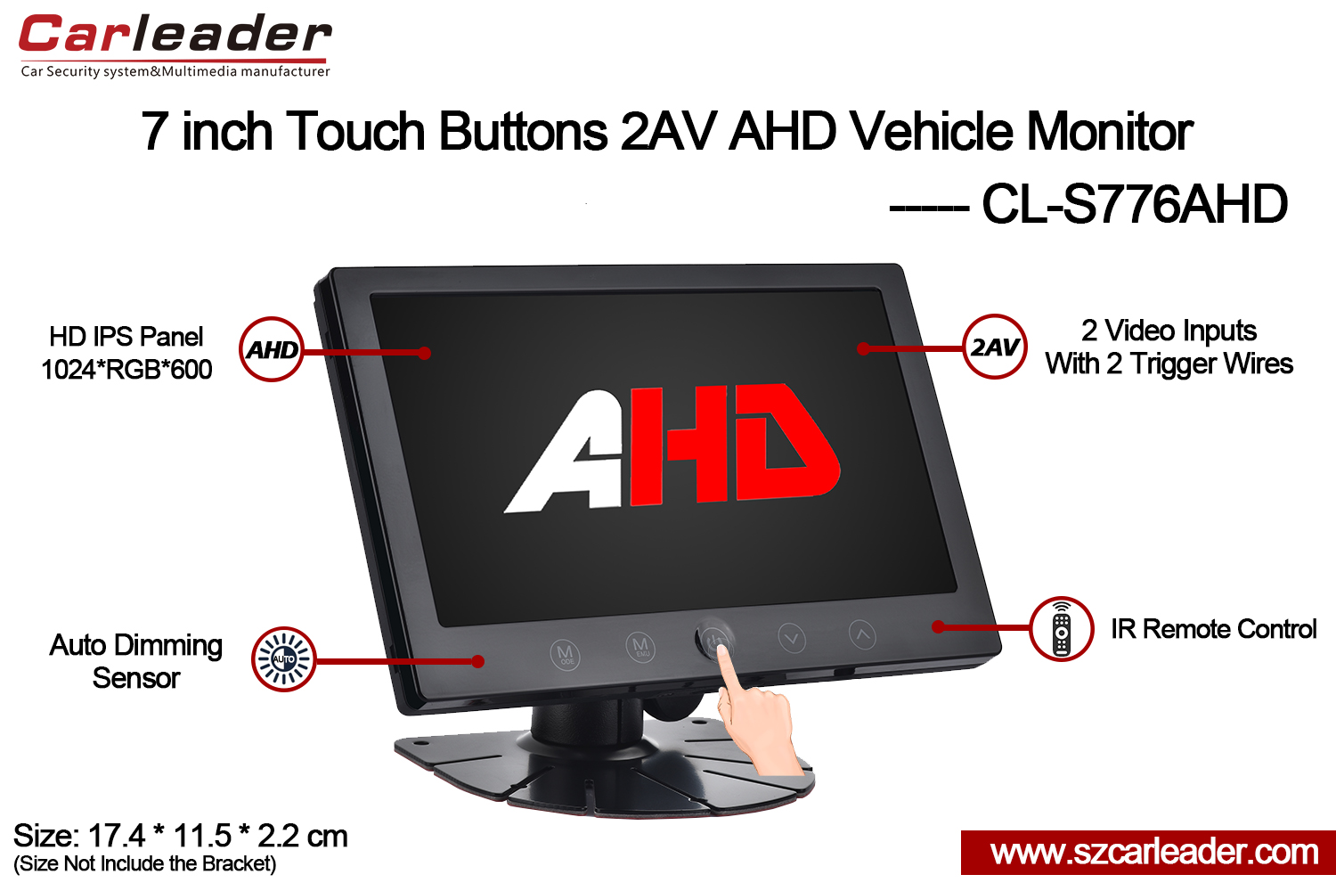 CarleaderMonitor de vehículo pesado con botones táctiles de entrada de pantalla IPS de 7 pulgadas 2CH AHDIdeal para uso automotriz, de seguridad, marítimo e industrial,combina durabilidad, flexibilidad y rendimiento de visualización de alta calidad en un paquete confiable.