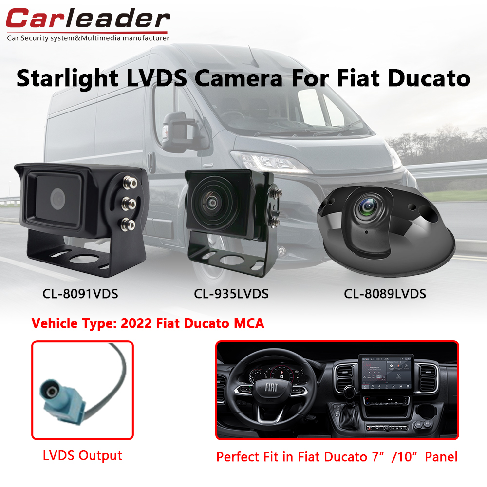 Estamos emocionados de presentarCámara de marcha atrás de visión nocturna a todo color Carleader LVDS para Fiat Ducato, que está especialmente diseñado para funcionar a la perfección con la pantalla de a bordo original de la furgoneta FIAT DUCATO. Las características con tecnología de visión nocturna Starlight hacen que la experiencia de conducción del conductor del Fiat Ducato sea más segura y placentera al proporcionar una vista colorida y más clara de los alrededores incluso en ambientes oscuros. Ahora Carleader tiene 3 modelos de cámara disponibles para conector LVDS.